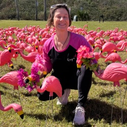 We recognize these heroic donations by placing a plastic pink flamingo in our annual Flocks of Love display. Each bird represents $100 raised in the fight against breast cancer.