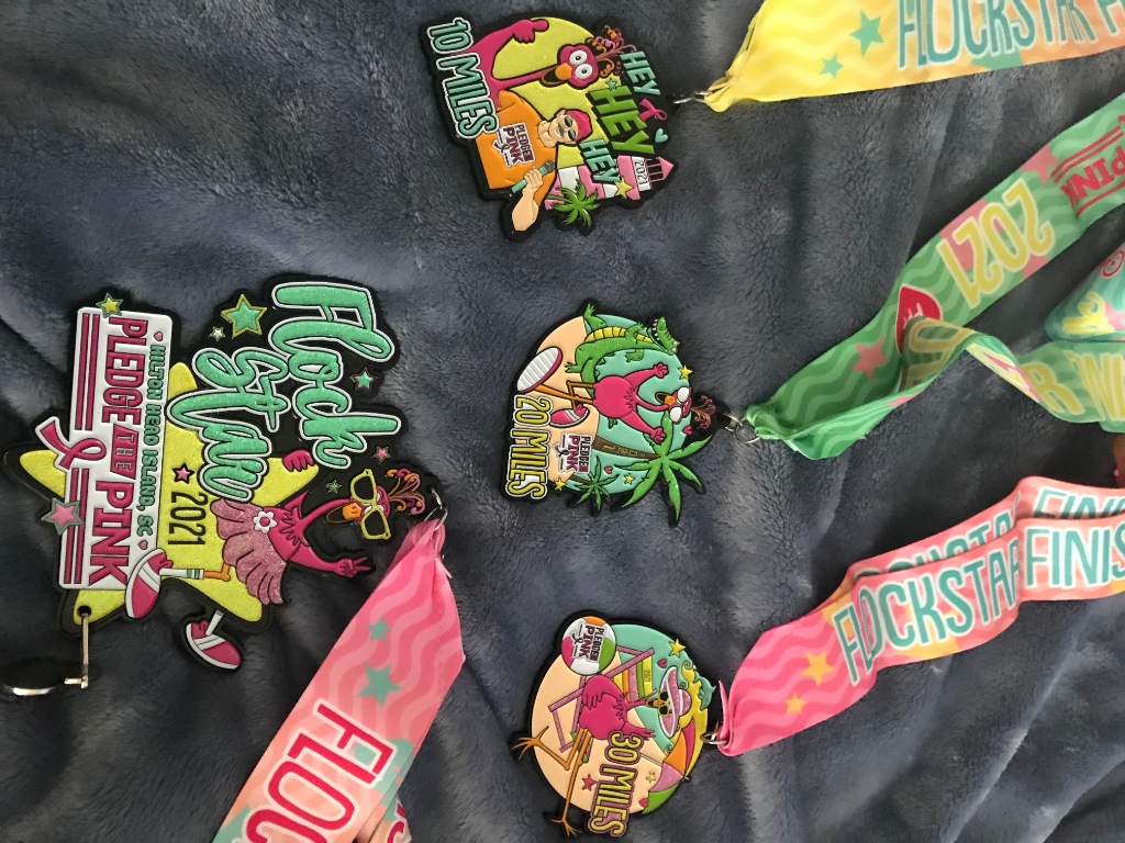 We recognize these heroic donations by placing a plastic pink flamingo in our annual Flocks of Love display. Each bird represents $100 raised in the fight against breast cancer.